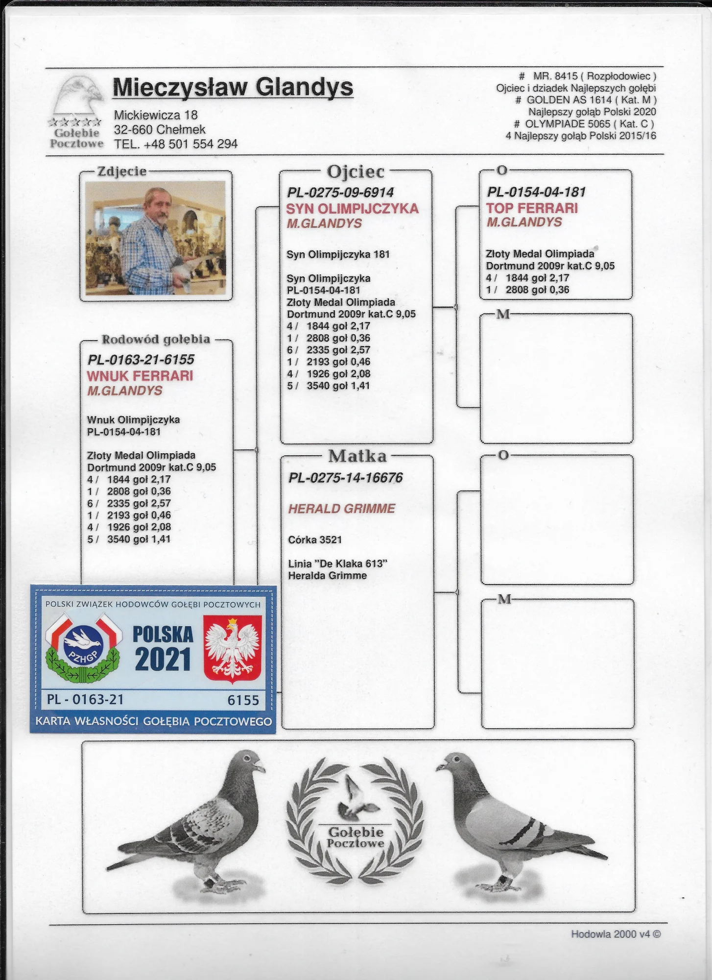 Więcej informacji w rodowodzie lub pod nr tel 694-316-255