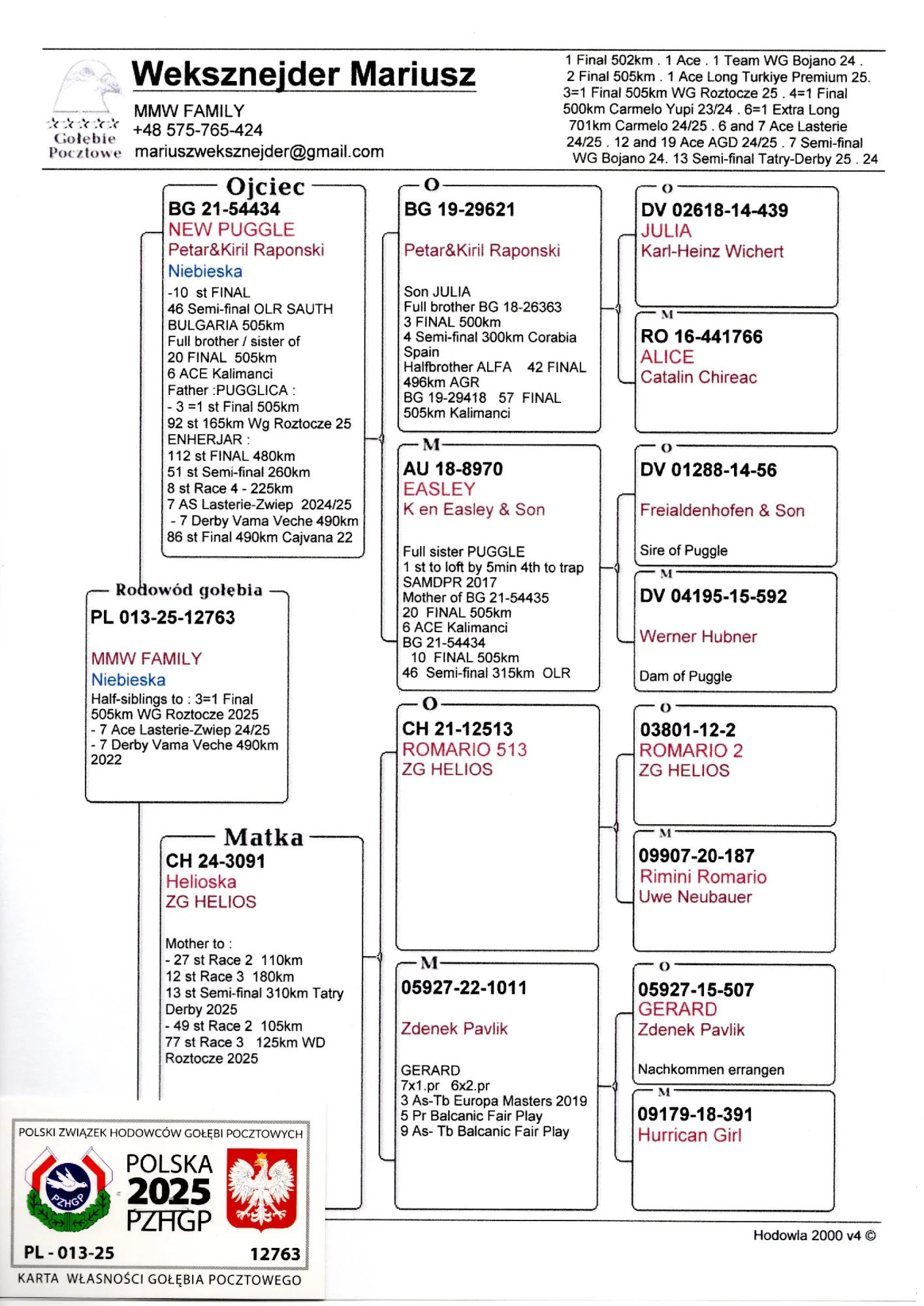 Oryg.gołąb z hodowli Mariusz Weksznejder więcej informacji w rodowodzie lub pod nr tel. +48 575-765-424