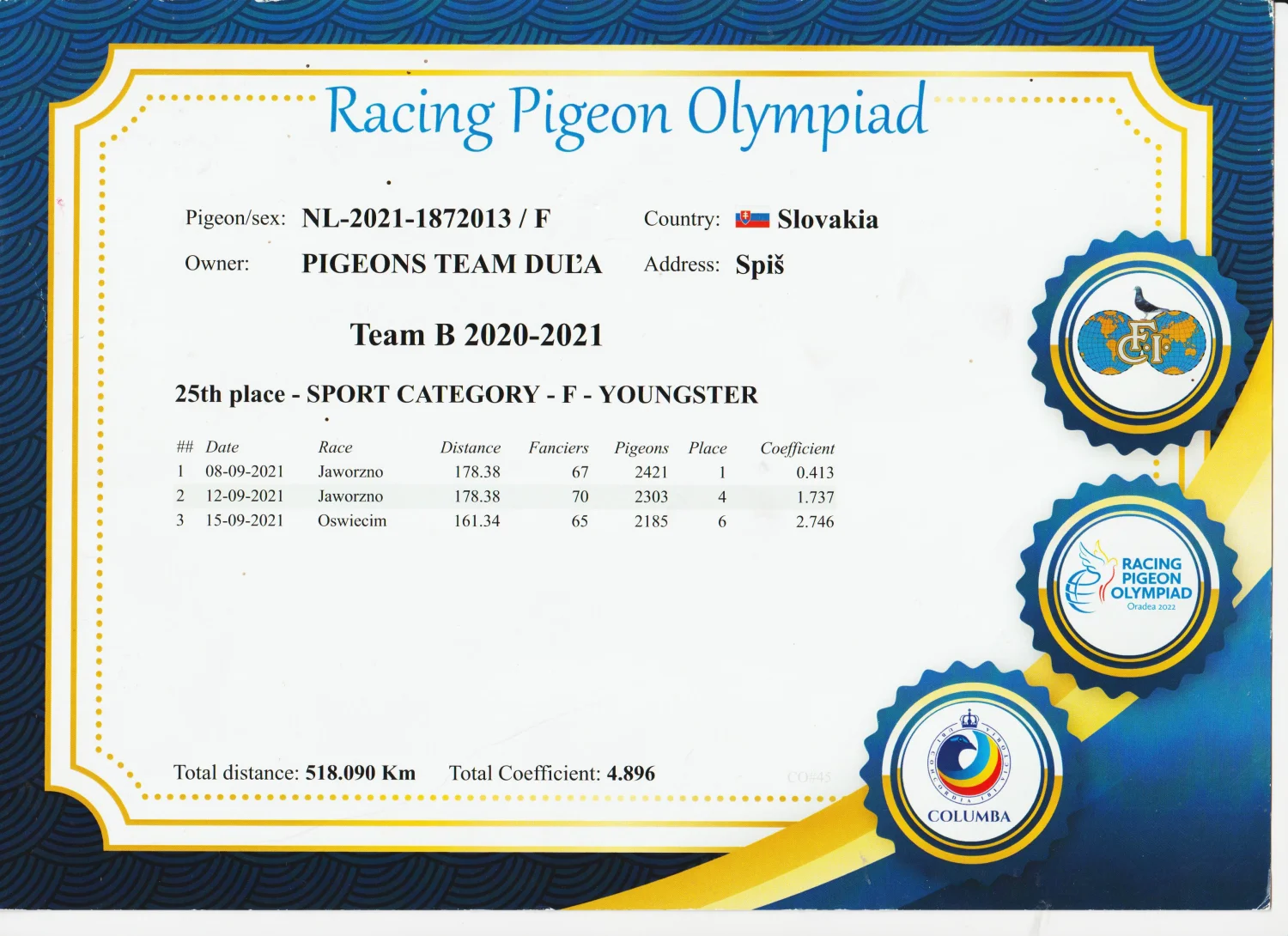 Numer obrączki: