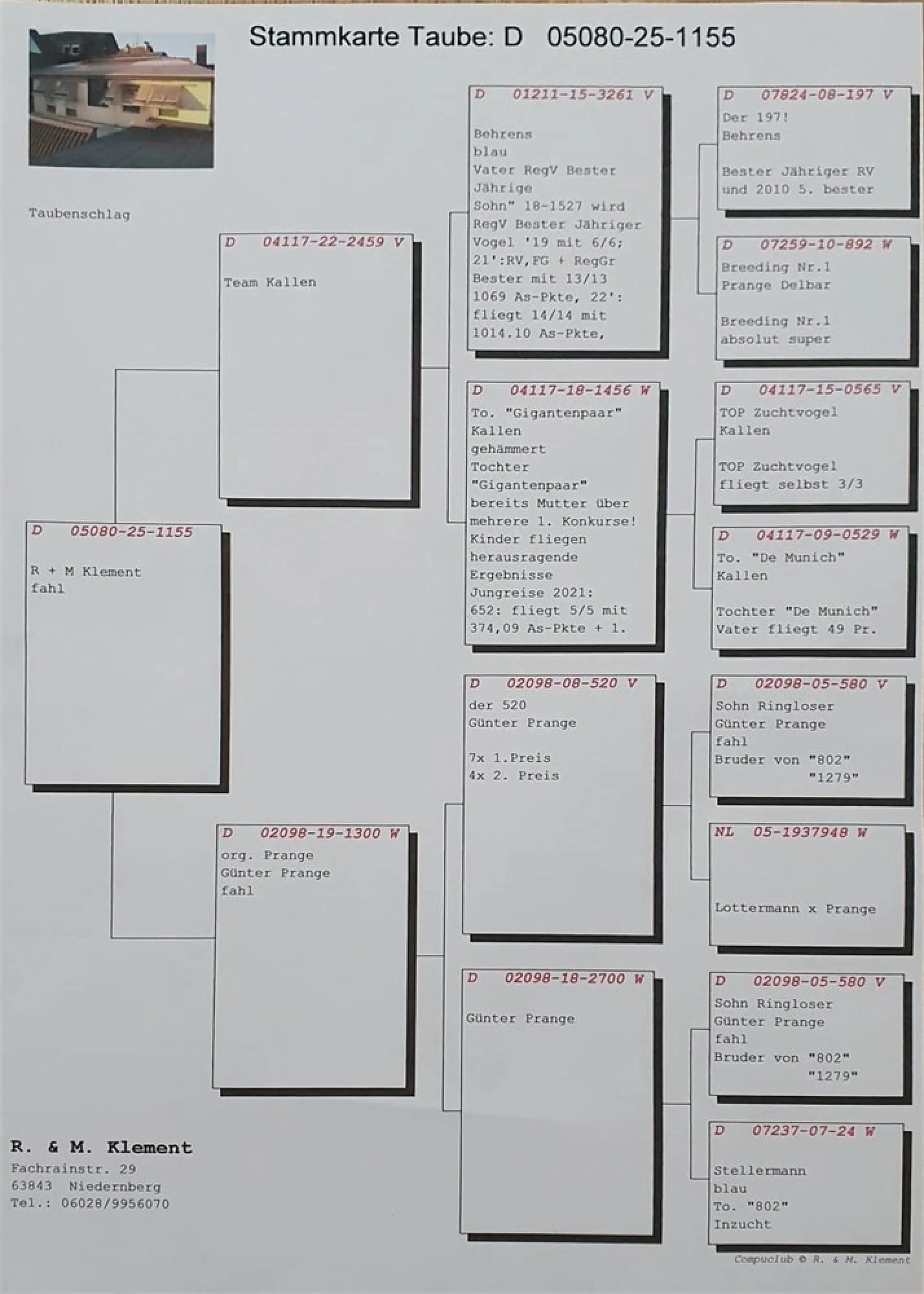 Oryg. gołąb z hodowli Matthias Klement więcej informacji w rodowodzie lub pod nr tel 88 219 0269