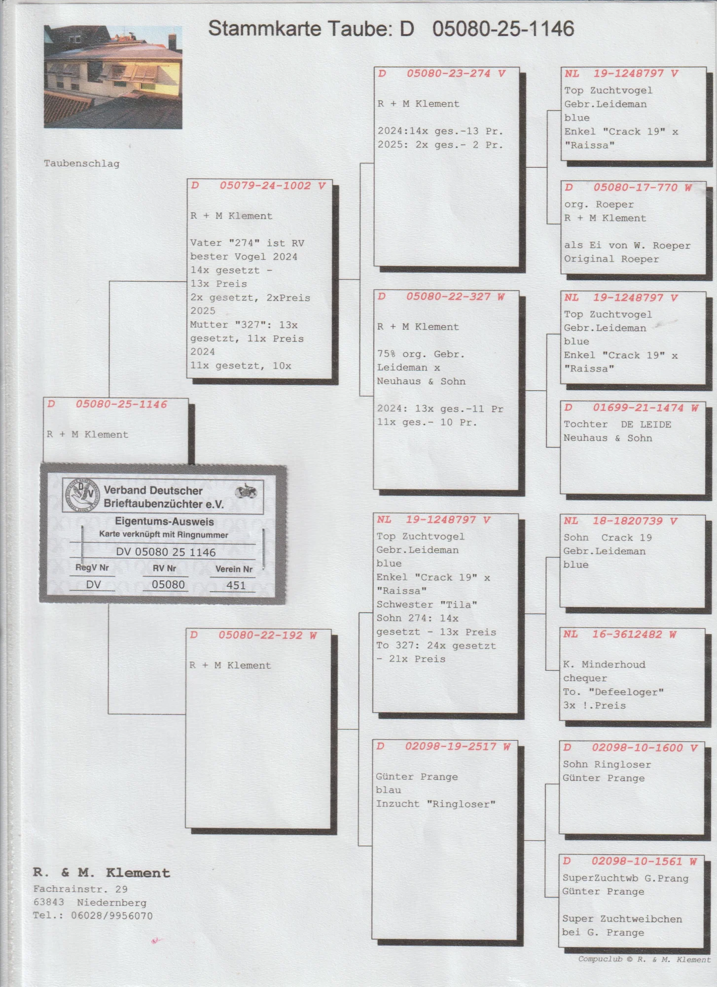 Oryg. gołąb z hodowli Matthias Klement więcej informacji w rodowodzie lub pod nr tel 882 190 269