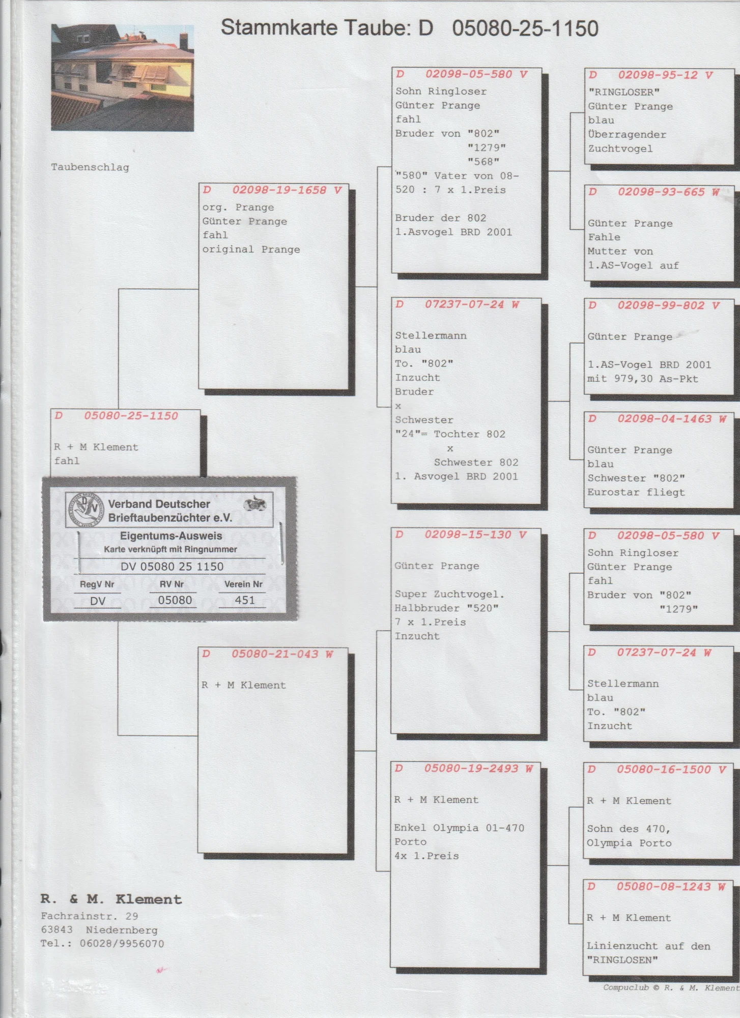 Oryg. gołąb z hodowli Matthias Klement więcej informacji w rodowodzie lub pod nr tel 882 190 269