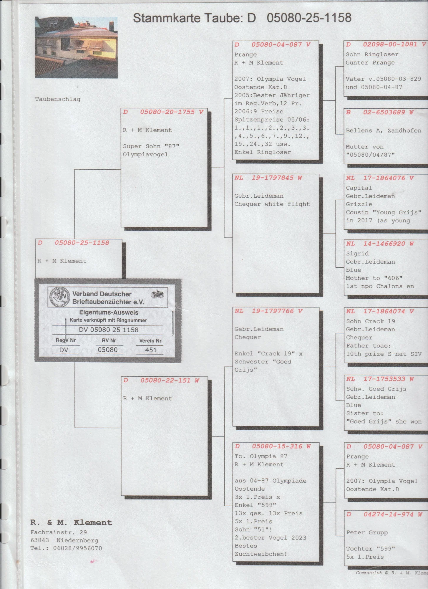 Oryg. gołąb z hodowli Matthias Klement więcej informacji w rodowodzie lub pod nr tel 882190269