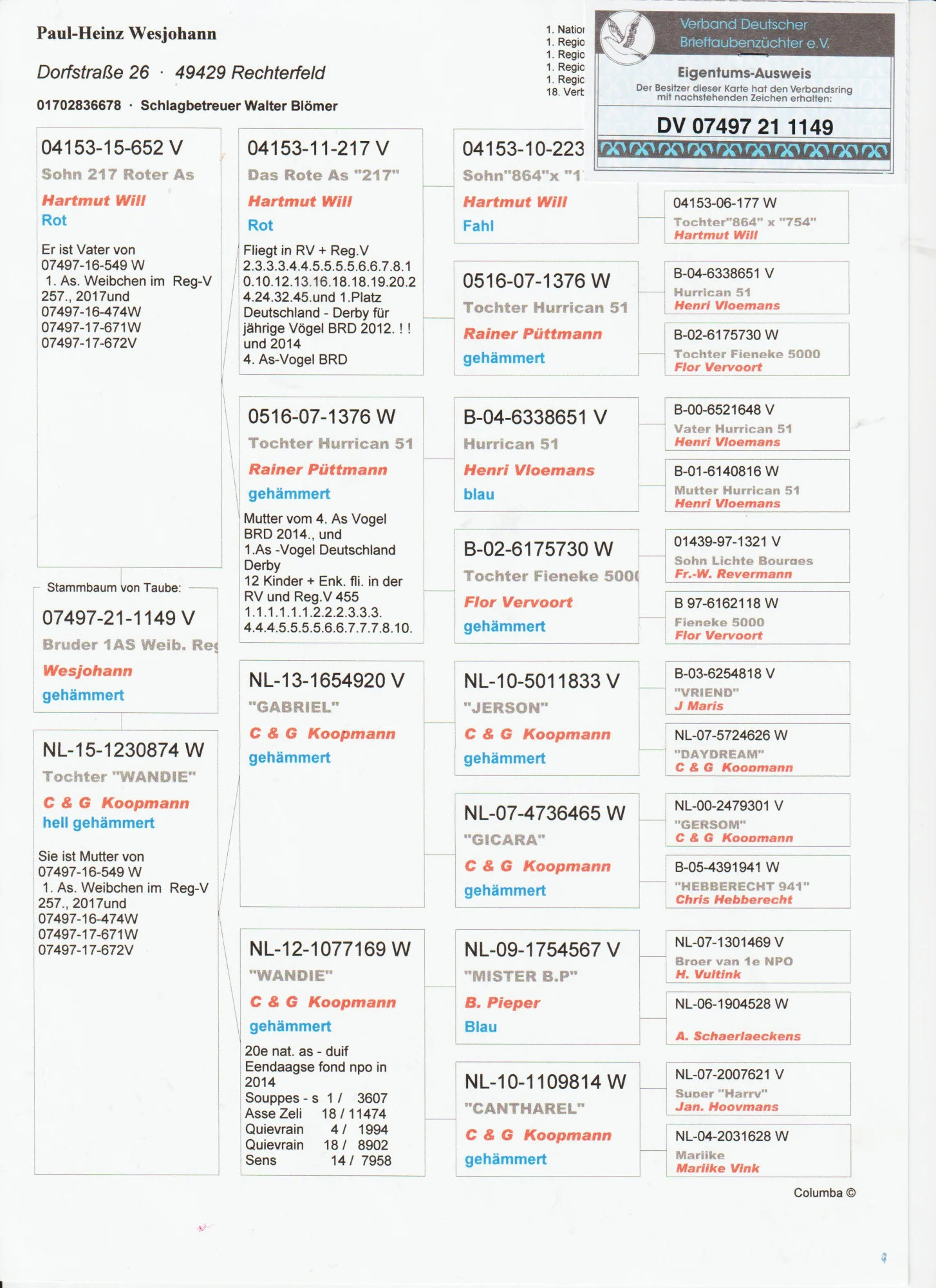 Całkowita likwidacja hodowli po zmarłym hodowcy WALDEMAR LUTZ więcej informacji w rodowodzie lub pod nr tel 603 400 723