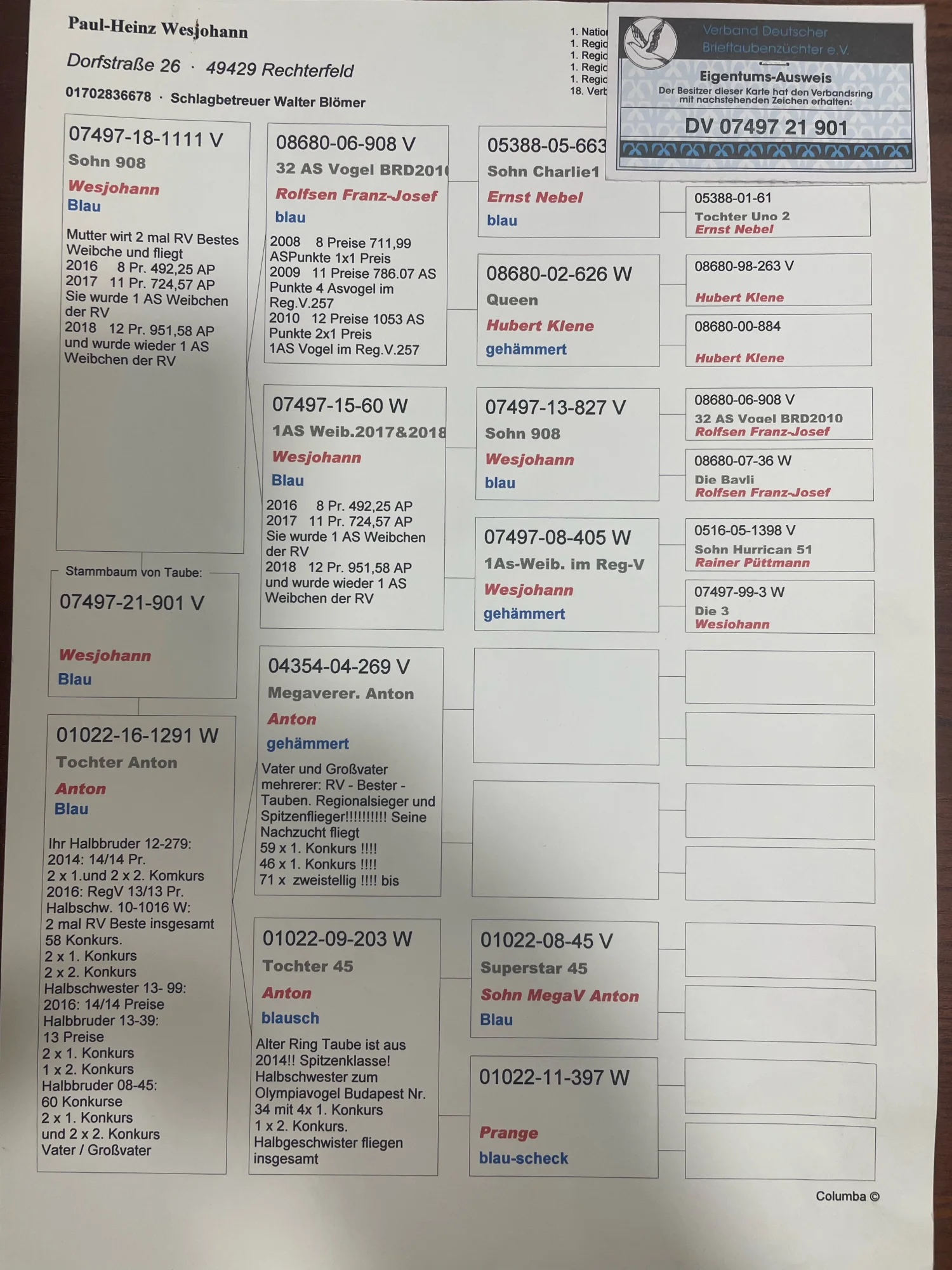 Całkowita likwidacja hodowli po zmarłym hodowcy WALDEMAR LUTZ więcej informacji w rodowodzie lub pod nr tel 603 400 723