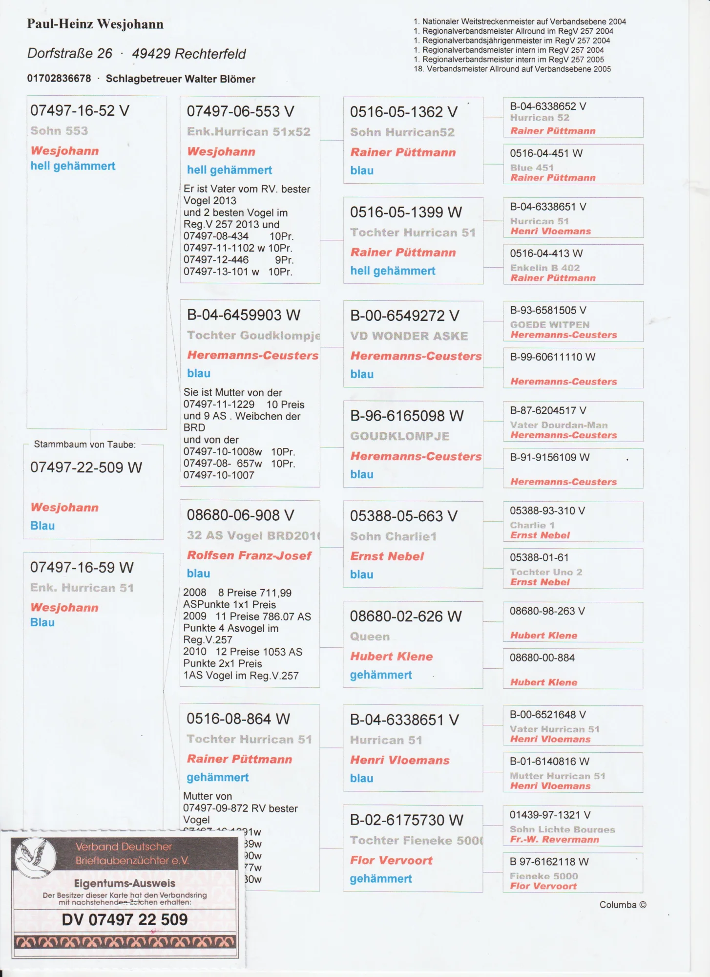 Całkowita likwidacja hodowli po zmarłym hodowcy WALDEMAR LUTZ więcej informacji w rodowodzie lub pod nr tel 603 400 723