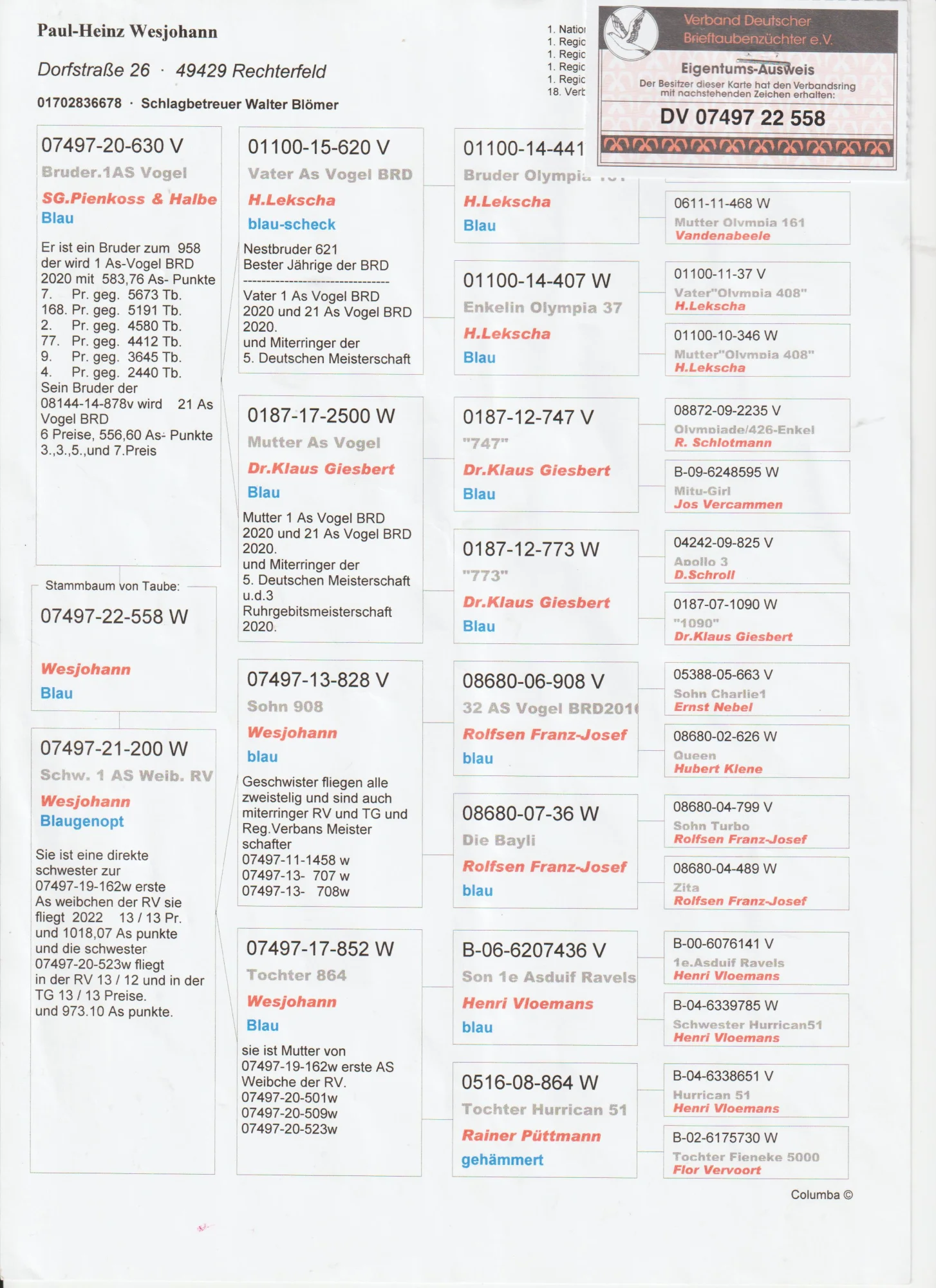 Całkowita likwidacja hodowli po zmarłym hodowcy WALDEMAR LUTZ więcej informacji w rodowodzie lub pod nr tel 603 400 723