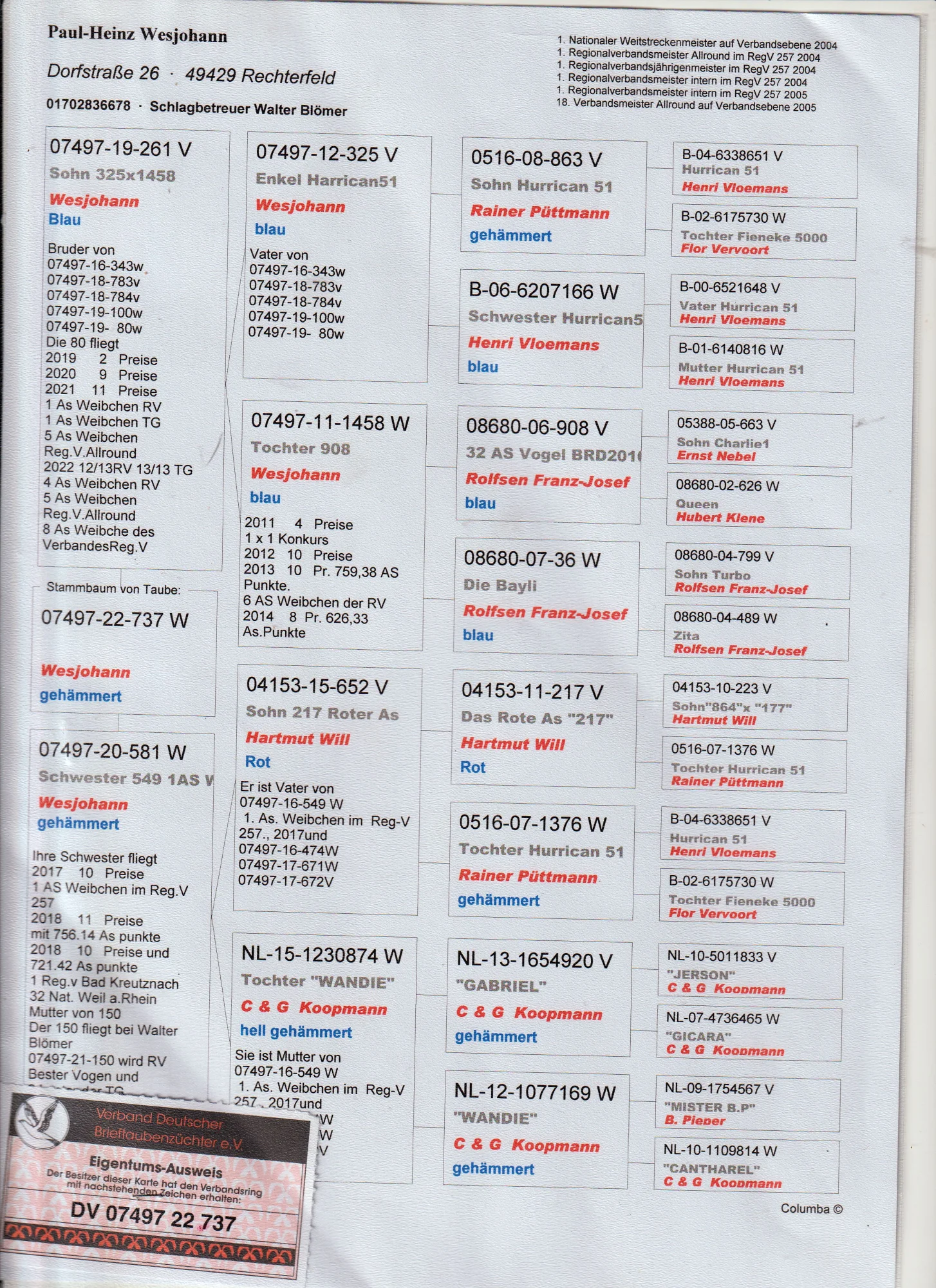 Całkowita likwidacja hodowli po zmarłym hodowcy WALDEMAR LUTZ więcej informacji w rodowodzie lub pod nr tel 603 400 723