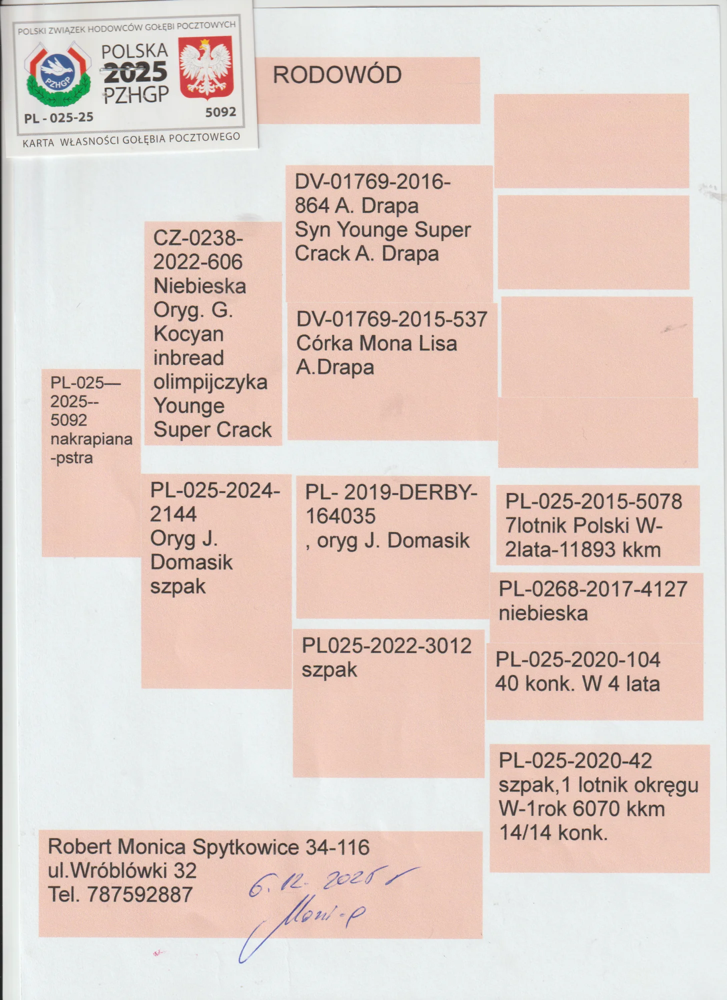 Więcej informacji w rodowodzie lub pod nr tel 787-592-887