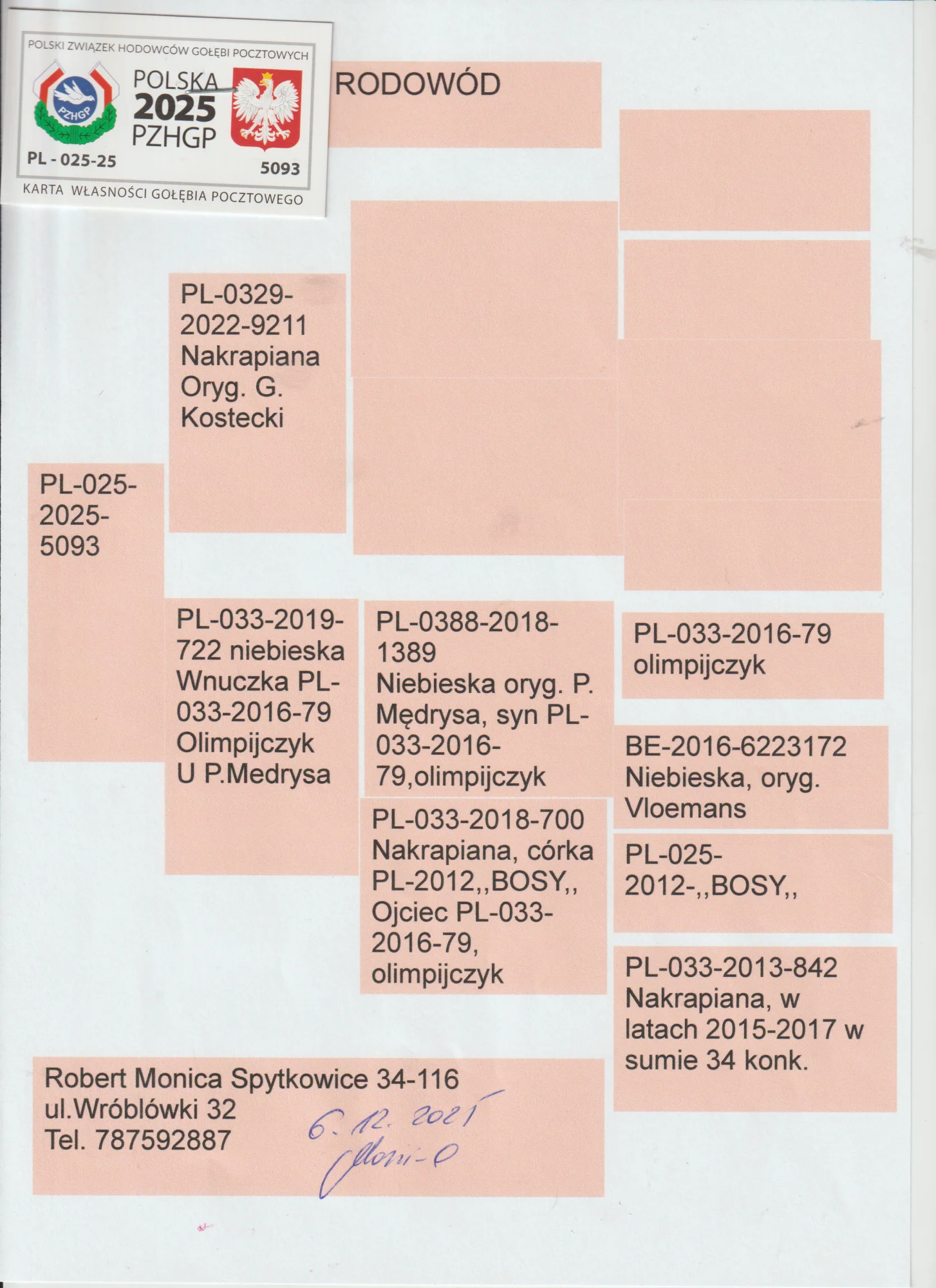 Więcej informacji w rodowodzie lub pod nr tel 787-592-887