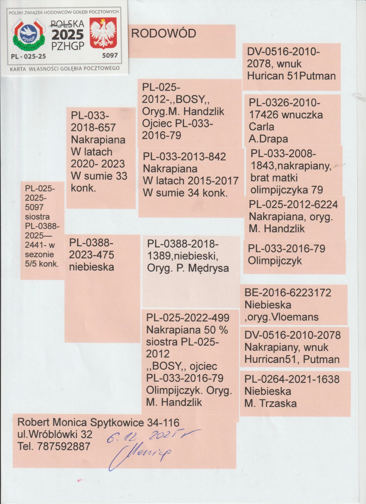 Więcej informacji w rodowodzie lub pod nr tel 787-592-887
