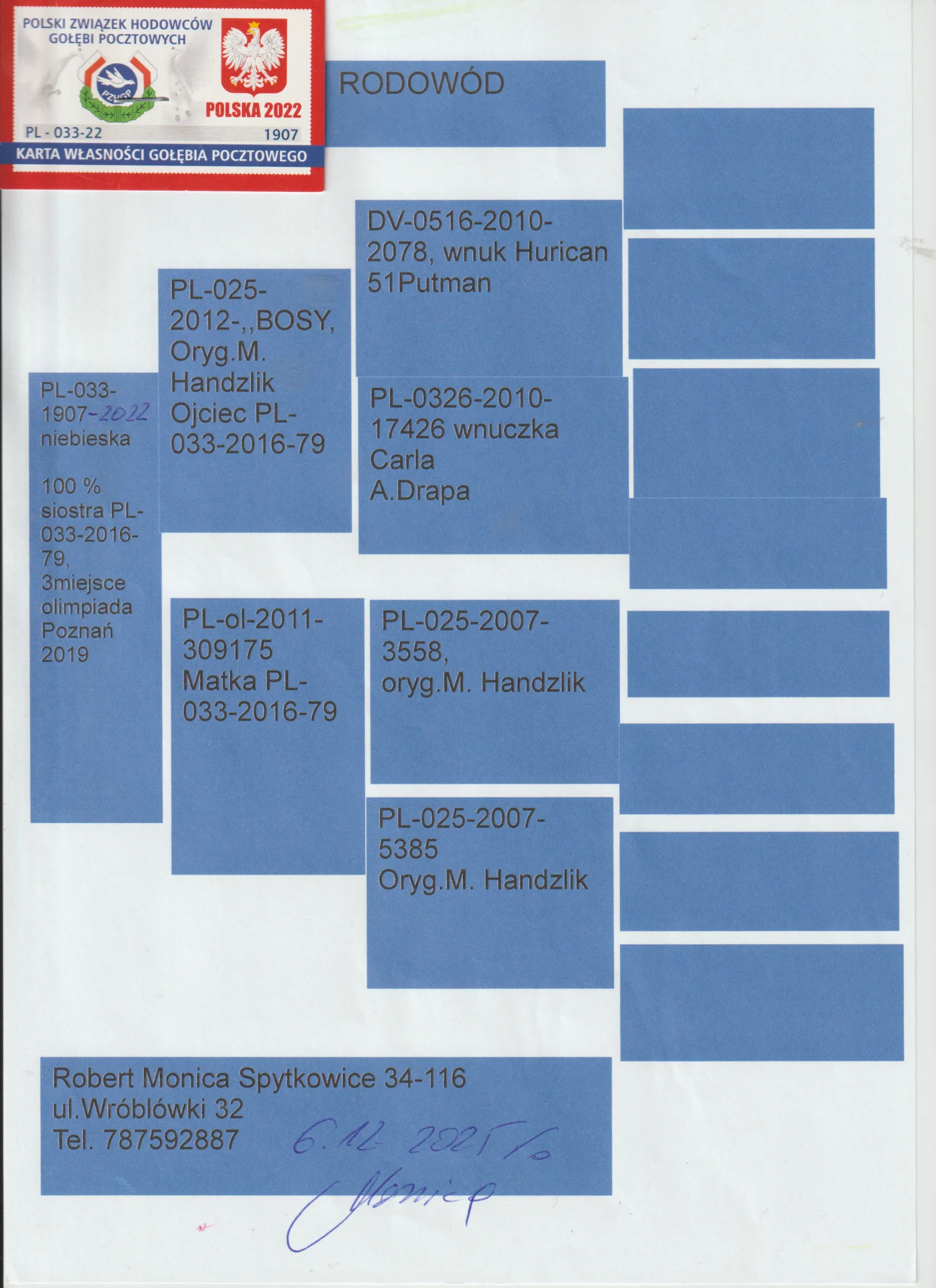 Więcej informacji w rodowodzie lub pod nr tel 787-592-887