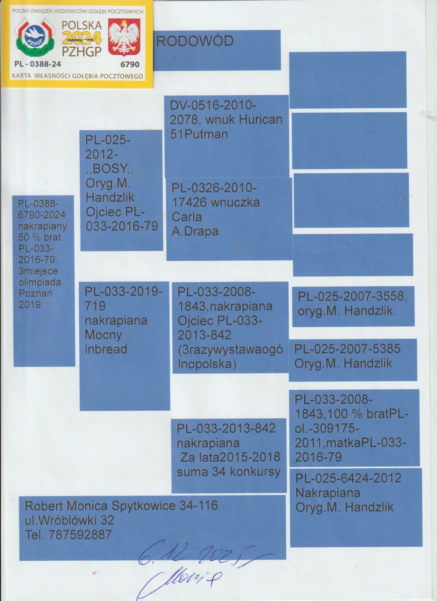 Więcej informacji w rodowodzie lub pod nr tel 787-592-887