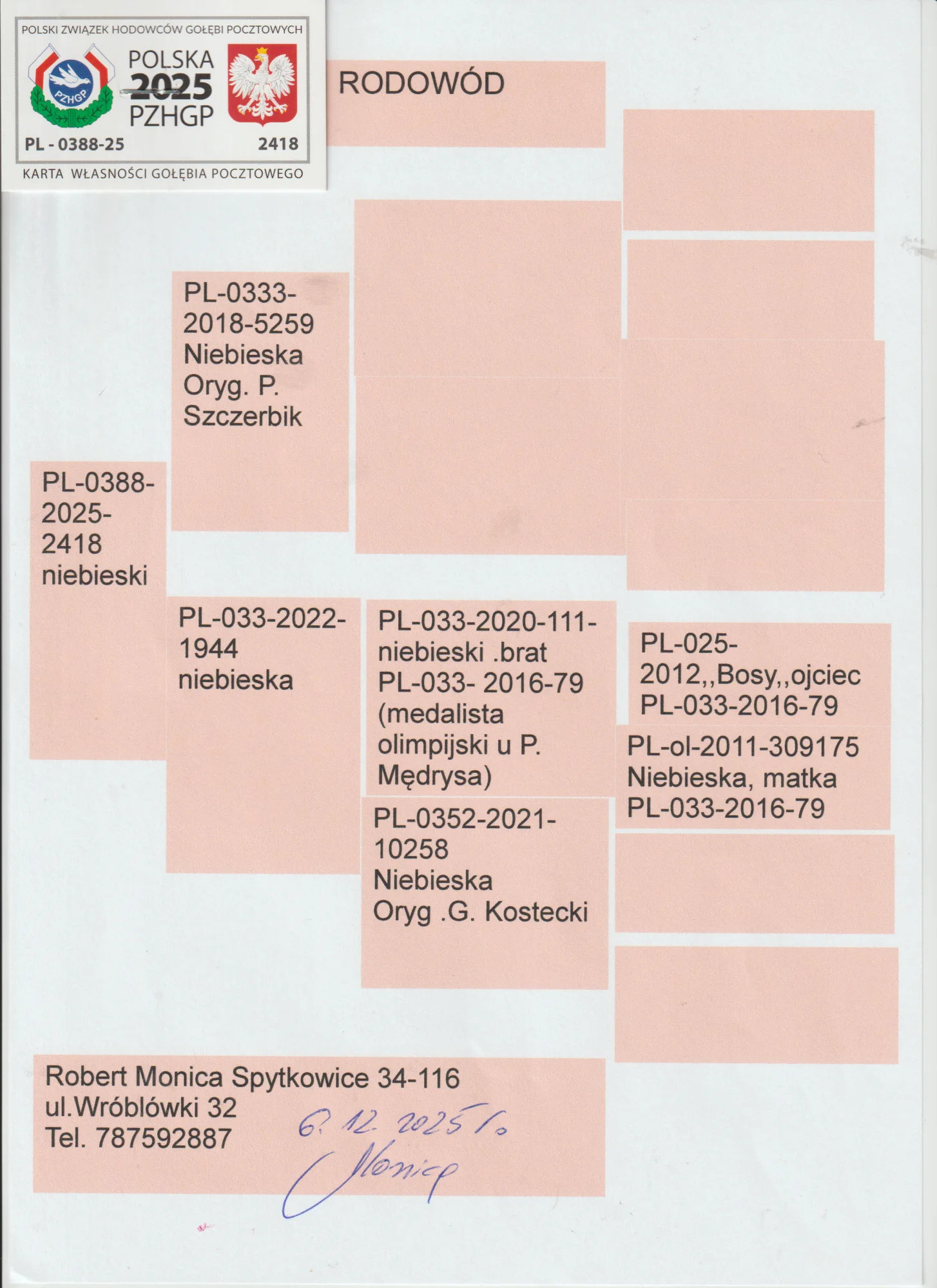 Więcej informacji w rodowodzie lub pod nr tel 787-592-887