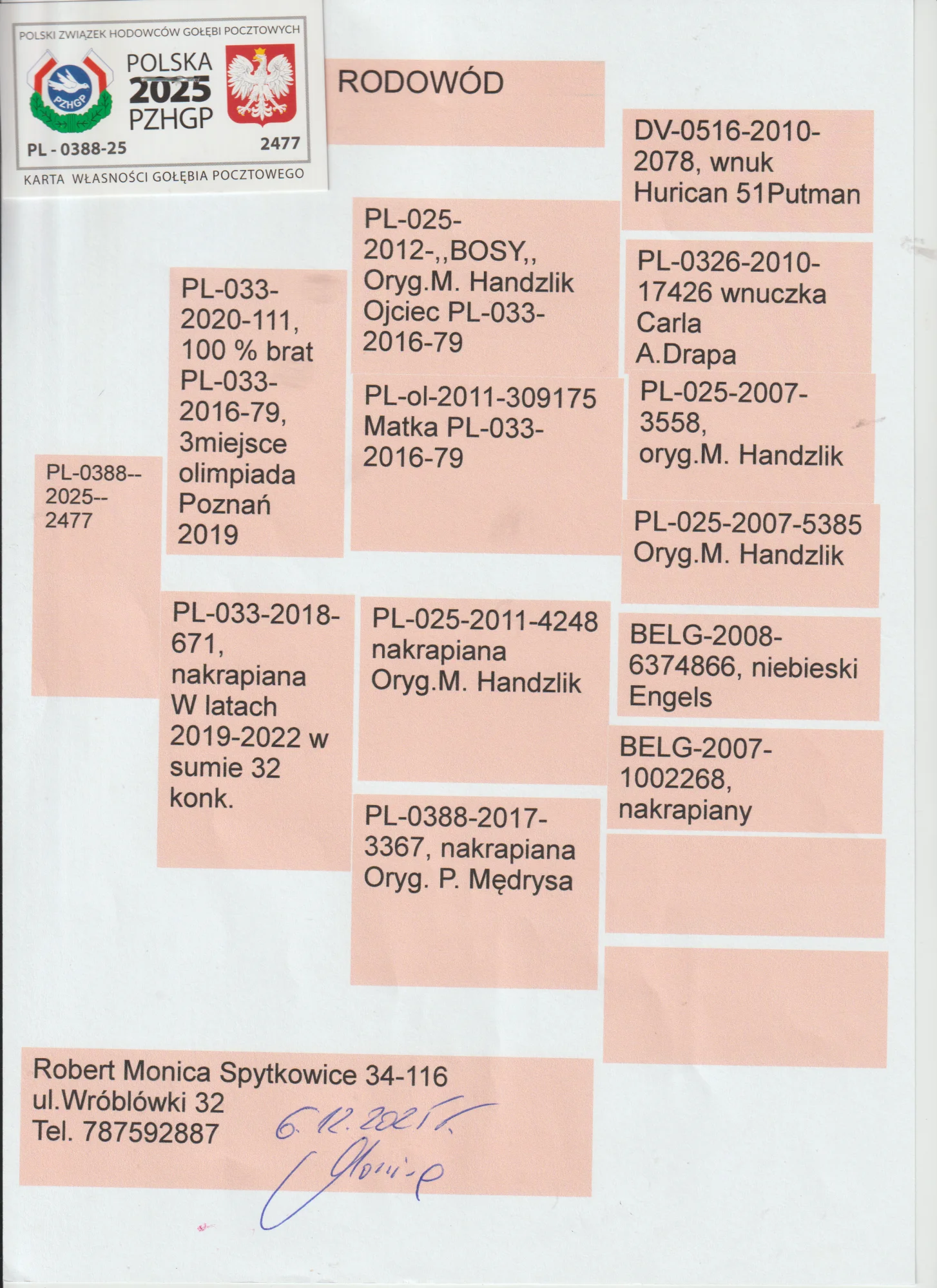 Więcej informacji w rodowodzie lub pod nr tel 787-592-887