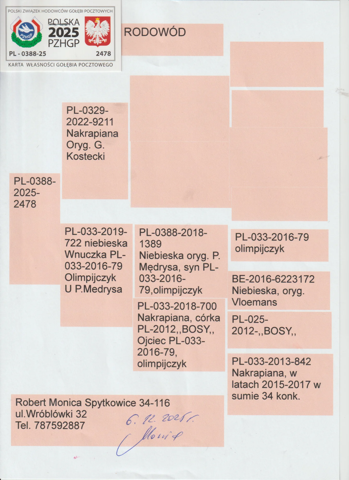 Więcej informacji w rodowodzie lub pod nr tel 787-592-887