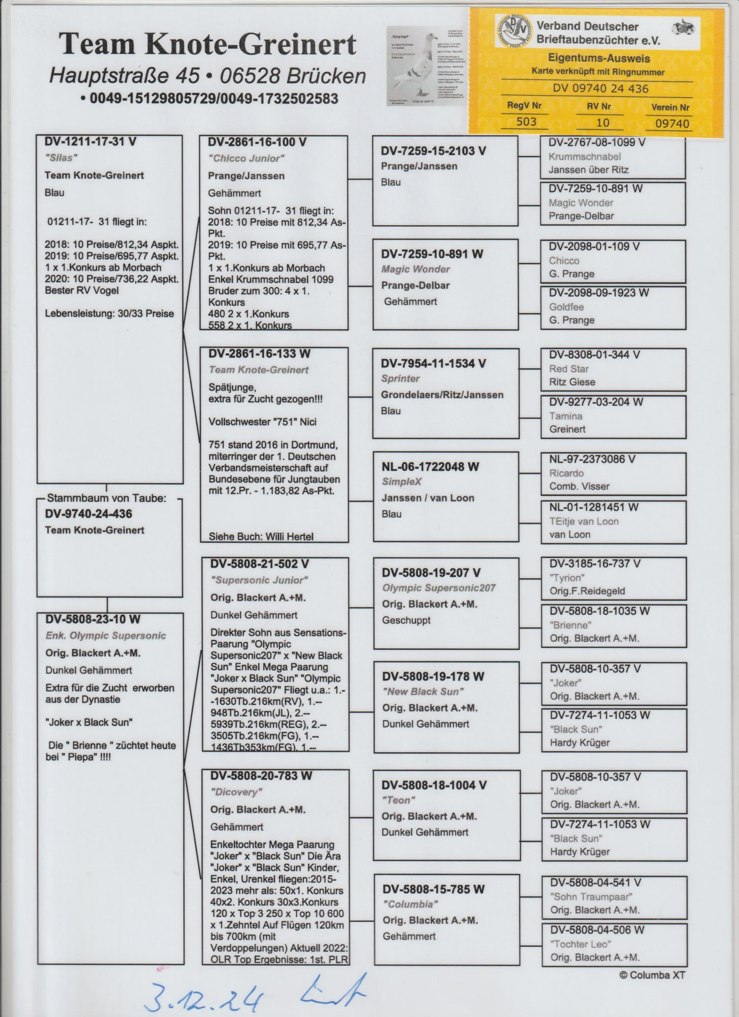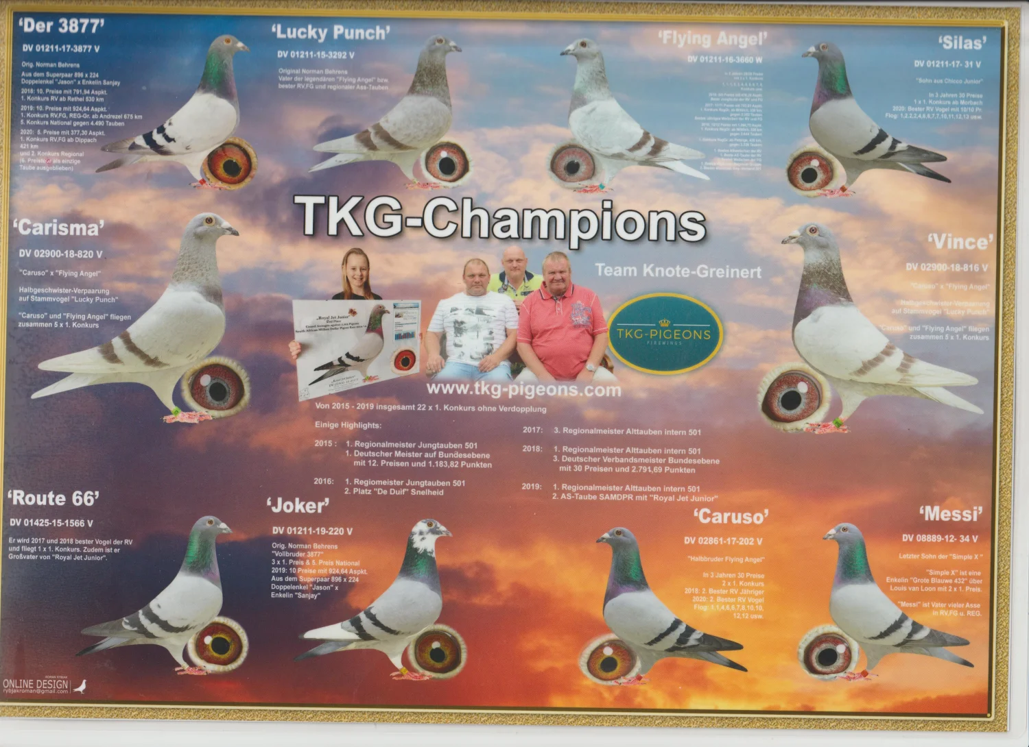 Oryg. gołąb z hodowli Team Knote Greinert więcej informacji w rodowodzie lub pod nr tel. 603 400 723