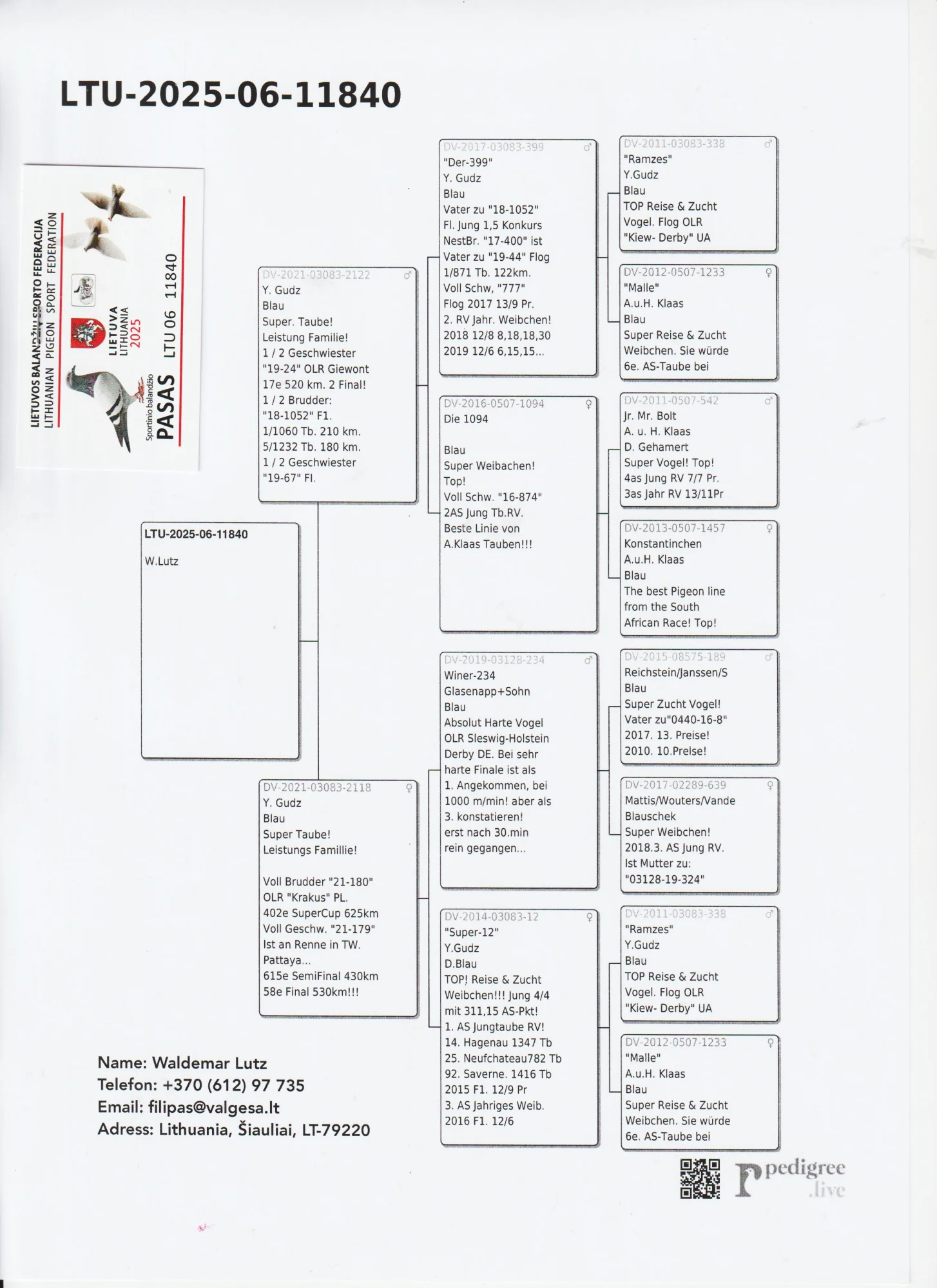 Całkowita likwidacja hodowli po zmarłym hodowcy WALDEMAR LUTZ więcej informacji w rodowodzie lub pod nr tel 603 400 723