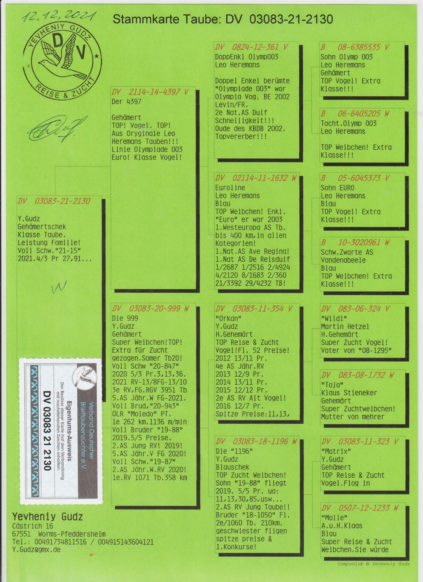 Całkowita likwidacja hodowli po zmarłym hodowcy WALDEMAR LUTZ więcej informacji w rodowodzie lub pod nr tel 603 400 723