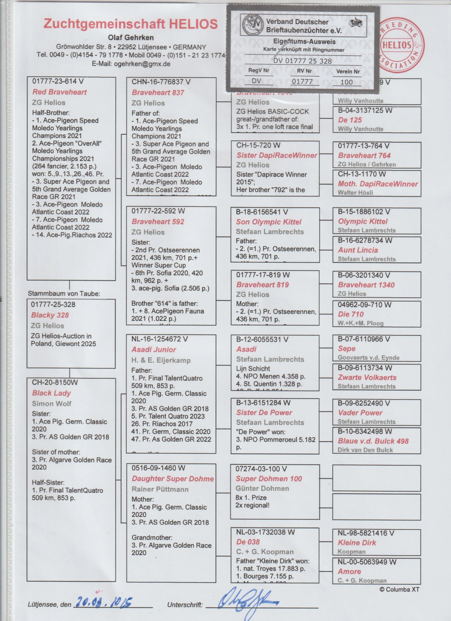 Oryg. gołąb z hodowli ZG Helios więcej informacji w rodowodzie lub pod nr tel 603 400 723