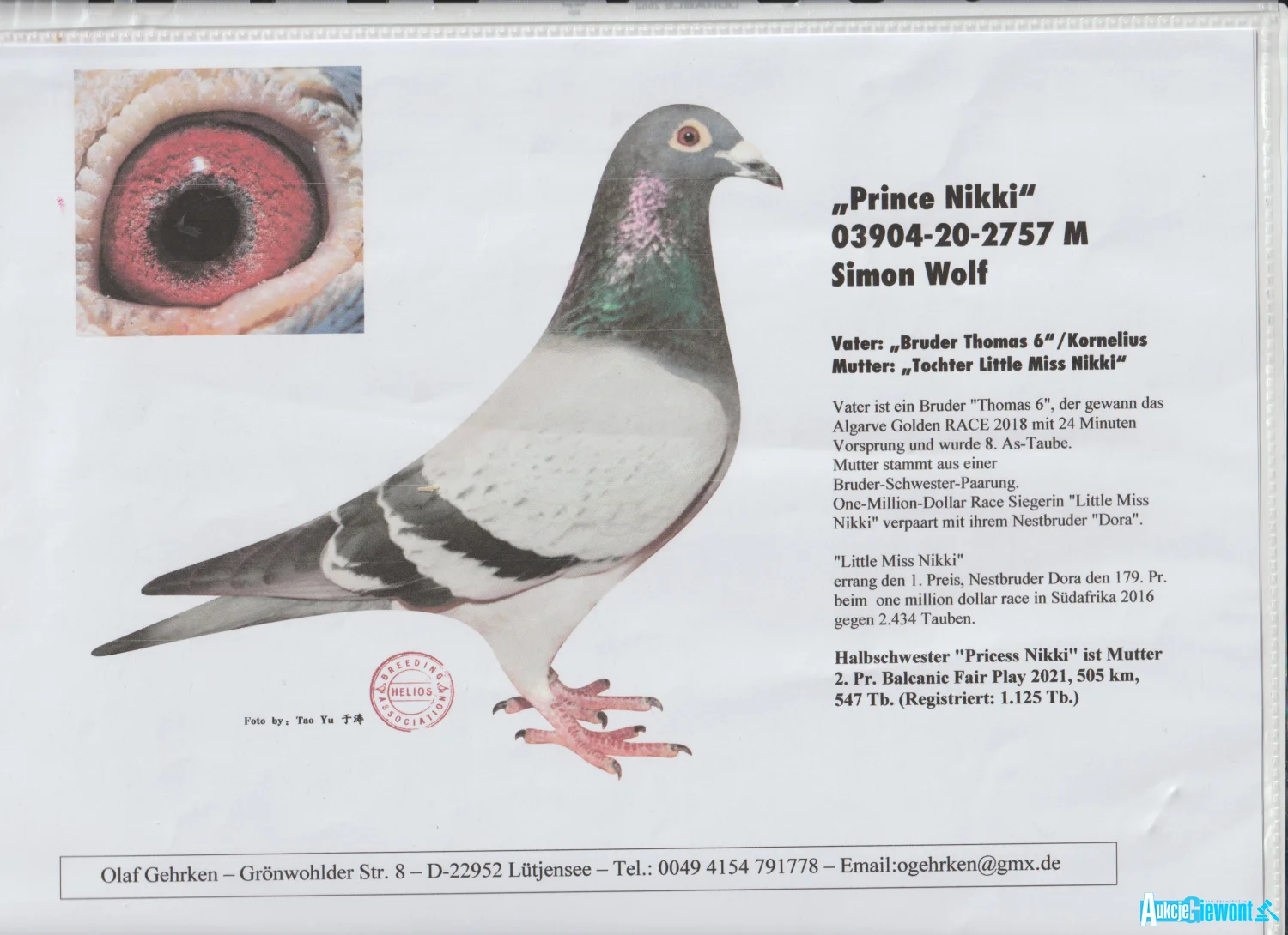 Oryg.gołab z hodowli Jan Bochenczak więcej informacji w rodowodzie lub pod nr tel