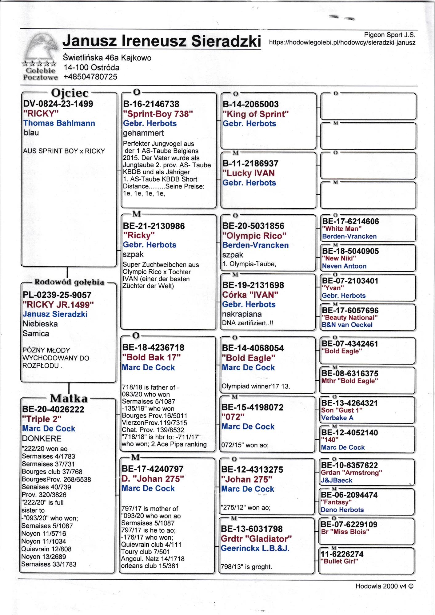 Szczegóły pochodzenia w rodowodzie lub pod nr. tel, 502 177 762